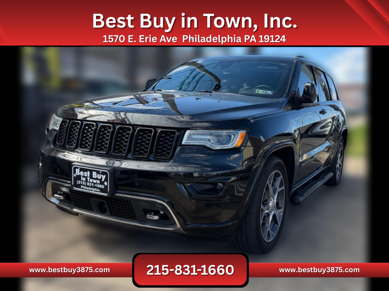 Luxury and capability come together in this 2020 Jeep Grand Cherokee Overland 4WD, a midsize SUV designed for drivers who want refinement with rugged strength. Powered by a 3.6L V6 engine paired with an 8-speed automatic transmission, it delivers smooth performance, confident highway driving, and proven off-road capability. Jeeps advanced 4x4 system ensures traction and control in all conditions.Inside, the Overland trim surrounds you with premium comfort including leather seating, heated and ventilated front seats, heated rear seats, dual-zone climate control, and a panoramic sunroof. Technology highlights include Uconnect infotainment with touchscreen, navigation, Bluetooth, Apple CarPlay/Android Auto, and a premium audio system, keeping you connected and entertained.Safety is a priority with Blind Spot Monitoring, Adaptive Cruise Control, Lane Departure Warning, and Forward Collision Mitigation, plus a rearview camera for added confidence. With seating for five passengers and versatile cargo space, the Grand Cherokee adapts easily to family trips, business, or leisure.With its bold design, upscale interior, and legendary Jeep capability, this 2020 Grand Cherokee Overland is the perfect SUV for drivers in Philadelphia who want luxury, utility, and adventure in one package. Financing Available! Bad credit good credit no credit! Apply online or in person and drive off today! All vehicles come with a brand-new PA inspection. Extended warranties available on all vehicles. Our finance team works with your budget and vehicle needs as top priorities regardless of credit history. All advertised prices exclude government fees taxes finance charges and any dealer document or preparation charge. All pricing and details are believed to be accurate but accuracy is not guaranteed. Best Buy in Town Inc. is not responsible for any typos the exact options list is automatically decoded from the VIN. ***ALL PRICES AND PAYMENTS REFLECT A $2000 CASH DOWN PAYMENT OR POSITIVE TRADE EQUITY APPLIED TO SALES PRICE. TAX TITLE TAGS AND OTHER FEES ARE NOT INCLUDED AND MUST BE PAID BY PURCHASER. CALL 215-831-1660 TO CONFIRM TOTAL SALES PRICE.*** Financing Available! Bad credit good credit no credit! Apply online or in person and drive off today! All vehicles come with a brand-new PA inspection. Extended warranties available on all vehicles. Our finance team works with your budget and vehicle needs as top priorities regardless of credit history. All advertised prices exclude government fees taxes finance charges and any dealer document or preparation charge. All pricing and details are believed to be accurate but accuracy is not guaranteed. Best Buy in Town Inc. is not responsible for any typos the exact options list is automatically decoded from the VIN. ***ALL PRICES AND PAYMENTS REFLECT A $2000 CASH DOWN PAYMENT OR POSITIVE TRADE EQUITY APPLIED TO SALES PRICE. TAX TITLE TAGS AND OTHER FEES ARE NOT INCLUDED AND MUST BE PAID BY PURCHASER. CALL 215-831-1660 TO CONFIRM TOTAL SALES PRICE.*** Financing Available! Bad credit good credit no credit! Apply online or in person and drive off today! All vehicles come with a brand-new PA inspection. Extended warranties available on all vehicles. Our finance team works with your budget and vehicle needs as top priorities regardless of credit history. All advertised prices exclude government fees taxes finance charges and any dealer document or preparation charge. All pricing and details are believed to be accurate but accuracy is not guaranteed. Best Buy in Town Inc. is not responsible for any typos the exact options list is automatically decoded from the VIN. ***ALL PRICES AND PAYMENTS REFLECT A $2000 CASH DOWN PAYMENT OR POSITIVE TRADE EQUITY APPLIED TO SALES PRICE. TAX TITLE TAGS AND OTHER FEES ARE NOT INCLUDED AND MUST BE PAID BY PURCHASER. CALL 215-831-1660 TO CONFIRM TOTAL SALES PRICE.*** Financing Available! Bad credit good credit no credit! Apply online or in person and drive off today! All vehicles come with a brand-new PA inspection. Extended warranties available on all vehicles. Our finance team works with your budget and vehicle needs as top priorities regardless of credit history. All advertised prices exclude government fees taxes finance charges and any dealer document or preparation charge. All pricing and details are believed to be accurate but accuracy is not guaranteed. Best Buy in Town Inc. is not responsible for any typos the exact options list is automatically decoded from the VIN. ***ALL PRICES AND PAYMENTS REFLECT A $2000 CASH DOWN PAYMENT OR POSITIVE TRADE EQUITY APPLIED TO SALES PRICE. TAX TITLE TAGS AND OTHER FEES ARE NOT INCLUDED AND MUST BE PAID BY PURCHASER. CALL 215-831-1660 TO CONFIRM TOTAL SALES PRICE.*** Financing Available! Bad credit good credit no credit! Apply online or in person and drive off today! All vehicles come with a brand-new PA inspection. Extended warranties available on all vehicles. Our finance team works with your budget and vehicle needs as top priorities regardless of credit history. All advertised prices exclude government fees taxes finance charges and any dealer document or preparation charge. All pricing and details are believed to be accurate but accuracy is not guaranteed. Best Buy in Town Inc. is not responsible for any typos the exact options list is automatically decoded from the VIN. ***ALL PRICES AND PAYMENTS REFLECT A $2000 CASH DOWN PAYMENT OR POSITIVE TRADE EQUITY APPLIED TO SALES PRICE. TAX TITLE TAGS AND OTHER FEES ARE NOT INCLUDED AND MUST BE PAID BY PURCHASER. CALL 215-831-1660 TO CONFIRM TOTAL SALES PRICE.*** Financing Available! Bad credit good credit no credit! Apply online or in person and drive off today! All vehicles come with a brand-new PA inspection. Extended warranties available on all vehicles. Our finance team works with your budget and vehicle needs as top priorities regardless of credit history. All advertised prices exclude government fees taxes finance charges and any dealer document or prep