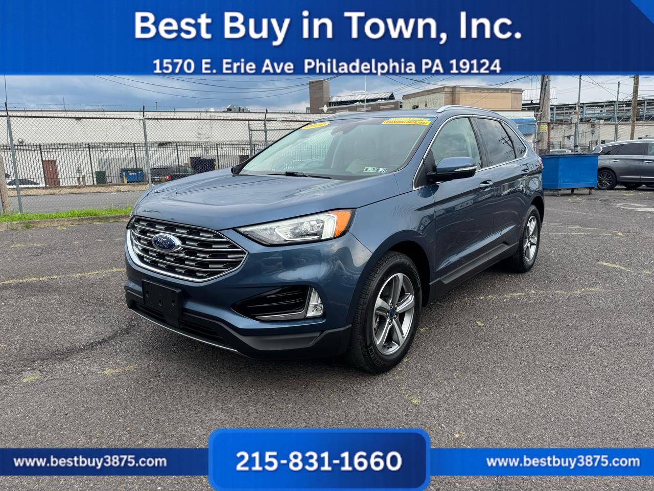 Smart design and modern technology define this 2019 Ford Edge SEL AWD, a midsize SUV built for drivers who want comfort, efficiency, and confidence. Powered by a 2.0L EcoBoost turbocharged 4-cylinder engine paired with an 8-speed automatic transmission, it delivers smooth acceleration, excellent fuel economy, and dependable all-weather traction.Inside, the SEL trim offers refined comfort with premium cloth or available leather seating, power-adjustable front seats, dual-zone climate control, and a spacious cabin for five passengers. Technology highlights include Fords SYNC 3 infotainment system with touchscreen, Bluetooth, Apple CarPlay/Android Auto, available navigation, and premium audio, keeping you connected and entertained wherever you go.Safety features include Blind Spot Monitoring, Lane Keeping Assist, Forward Collision Warning, Adaptive Cruise Control, and a rearview camera, giving peace of mind on every drive. With versatile cargo space and a sleek design, the Edge adapts easily to family trips, business, or leisure.With its bold styling, advanced features, and Fords reputation for reliability, this 2019 Edge SEL is the perfect SUV for drivers in Philadelphia who want practicality, comfort, and confidence in one package. Financing Available! Bad credit good credit no credit! Apply online or in person and drive off today! All vehicles come with a brand-new PA inspection. Extended warranties available on all vehicles. Our finance team works with your budget and vehicle needs as top priorities regardless of credit history. All advertised prices exclude government fees taxes finance charges and any dealer document or preparation charge. All pricing and details are believed to be accurate but accuracy is not guaranteed. Best Buy in Town Inc. is not responsible for any typos the exact options list is automatically decoded from the VIN. ***ALL PRICES AND PAYMENTS REFLECT A $2000 CASH DOWN PAYMENT OR POSITIVE TRADE EQUITY APPLIED TO SALES PRICE. TAX TITLE TAGS AND OTHER FEES ARE NOT INCLUDED AND MUST BE PAID BY PURCHASER. CALL 215-831-1660 TO CONFIRM TOTAL SALES PRICE.*** Financing Available! Bad credit good credit no credit! Apply online or in person and drive off today! All vehicles come with a brand-new PA inspection. Extended warranties available on all vehicles. Our finance team works with your budget and vehicle needs as top priorities regardless of credit history. All advertised prices exclude government fees taxes finance charges and any dealer document or preparation charge. All pricing and details are believed to be accurate but accuracy is not guaranteed. Best Buy in Town Inc. is not responsible for any typos the exact options list is automatically decoded from the VIN. ***ALL PRICES AND PAYMENTS REFLECT A $2000 CASH DOWN PAYMENT OR POSITIVE TRADE EQUITY APPLIED TO SALES PRICE. TAX TITLE TAGS AND OTHER FEES ARE NOT INCLUDED AND MUST BE PAID BY PURCHASER. CALL 215-831-1660 TO CONFIRM TOTAL SALES PRICE.*** Financing Available! Bad credit good credit no credit! Apply online or in person and drive off today! All vehicles come with a brand-new PA inspection. Extended warranties available on all vehicles. Our finance team works with your budget and vehicle needs as top priorities regardless of credit history. All advertised prices exclude government fees taxes finance charges and any dealer document or preparation charge. All pricing and details are believed to be accurate but accuracy is not guaranteed. Best Buy in Town Inc. is not responsible for any typos the exact options list is automatically decoded from the VIN. ***ALL PRICES AND PAYMENTS REFLECT A $2000 CASH DOWN PAYMENT OR POSITIVE TRADE EQUITY APPLIED TO SALES PRICE. TAX TITLE TAGS AND OTHER FEES ARE NOT INCLUDED AND MUST BE PAID BY PURCHASER. CALL 215-831-1660 TO CONFIRM TOTAL SALES PRICE.*** Financing Available! Bad credit good credit no credit! Apply online or in person and drive off today! All vehicles come with a brand-new PA inspection. Extended warranties available on all vehicles. Our finance team works with your budget and vehicle needs as top priorities regardless of credit history. All advertised prices exclude government fees taxes finance charges and any dealer document or preparation charge. All pricing and details are believed to be accurate but accuracy is not guaranteed. Best Buy in Town Inc. is not responsible for any typos the exact options list is automatically decoded from the VIN. ***ALL PRICES AND PAYMENTS REFLECT A $2000 CASH DOWN PAYMENT OR POSITIVE TRADE EQUITY APPLIED TO SALES PRICE. TAX TITLE TAGS AND OTHER FEES ARE NOT INCLUDED AND MUST BE PAID BY PURCHASER. CALL 215-831-1660 TO CONFIRM TOTAL SALES PRICE.*** Financing Available! Bad credit good credit no credit! Apply online or in person and drive off today! All vehicles come with a brand-new PA inspection. Extended warranties available on all vehicles. Our finance team works with your budget and vehicle needs as top priorities regardless of credit history. All advertised prices exclude government fees taxes finance charges and any dealer document or preparation charge. All pricing and details are believed to be accurate but accuracy is not guaranteed. Best Buy in Town Inc. is not responsible for any typos the exact options list is automatically decoded from the VIN. ***ALL PRICES AND PAYMENTS REFLECT A $2000 CASH DOWN PAYMENT OR POSITIVE TRADE EQUITY APPLIED TO SALES PRICE. TAX TITLE TAGS AND OTHER FEES ARE NOT INCLUDED AND MUST BE PAID BY PURCHASER. CALL 215-831-1660 TO CONFIRM TOTAL SALES PRICE.*** Financing Available! Bad credit good credit no credit! Apply online or in person and drive off today! All vehicles come with a brand-new PA inspection. Extended warranties available on all vehicles. Our finance team works with your budget and vehicle needs as top priorities regardless of credit history. All advertised prices exclude government fees taxes finance charges and any dealer document or preparation charge. All pricing and details are b