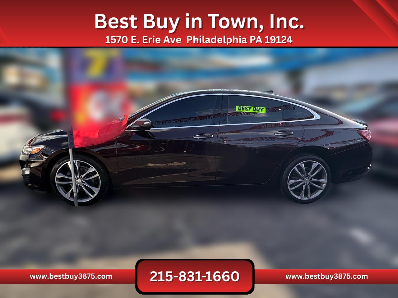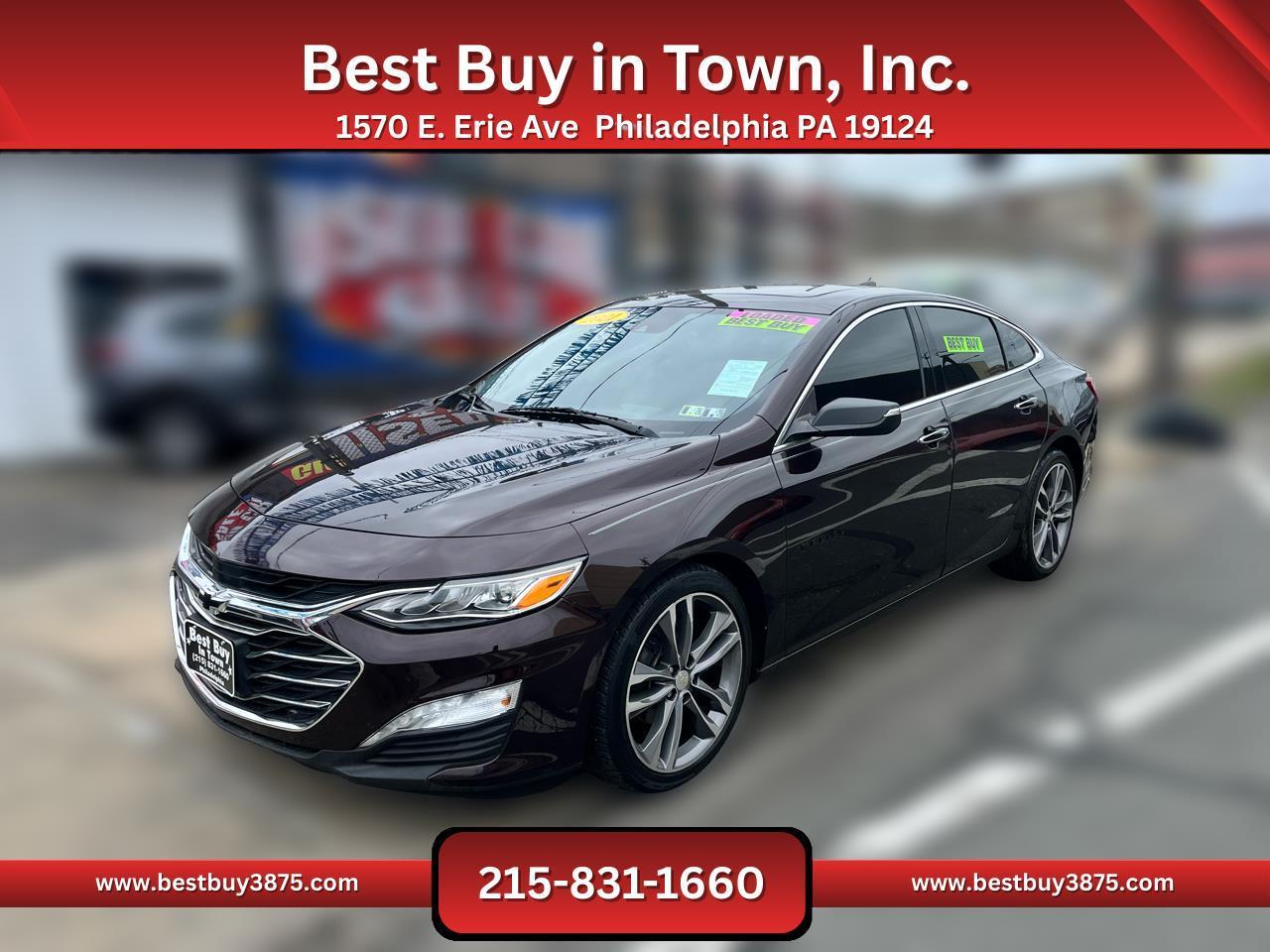Refined style and advanced technology define this 2021 Chevrolet Malibu Premier Sedan, a midsize car built for drivers who want comfort, efficiency, and sophistication. Powered by a 2.0L turbocharged 4-cylinder engine paired with a 9-speed automatic transmission, it delivers smooth acceleration, confident highway performance, and excellent fuel economy.Inside, the Premier trim surrounds you with upscale features including leather seating, heated and ventilated front seats, dual-zone climate control, and a power sunroof. Technology highlights include Chevrolets MyLink infotainment system with touchscreen, Bluetooth, Apple CarPlay/Android Auto, available navigation, and a premium Bose audio system, keeping you connected and entertained on every drive.Safety comes standard with Forward Collision Alert, Lane Keep Assist, Blind Spot Monitoring, Adaptive Cruise Control, and a rearview camera, giving peace of mind whether commuting or traveling. With seating for five passengers and a spacious trunk, the Malibu balances practicality with premium comfort.With its sleek design, advanced features, and Chevrolets reputation for reliability, this 2021 Malibu Premier is the perfect sedan for drivers in Philadelphia who want efficiency, technology, and style in one package. Financing Available! Bad credit good credit no credit! Apply online or in person and drive off today! All vehicles come with a brand-new PA inspection. Extended warranties available on all vehicles. Our finance team works with your budget and vehicle needs as top priorities regardless of credit history. All advertised prices exclude government fees taxes finance charges and any dealer document or preparation charge. All pricing and details are believed to be accurate but accuracy is not guaranteed. Best Buy in Town Inc. is not responsible for any typos the exact options list is automatically decoded from the VIN. ***ALL PRICES AND PAYMENTS REFLECT A $2000 CASH DOWN PAYMENT OR POSITIVE TRADE EQUITY APPLIED TO SALES PRICE. TAX TITLE TAGS AND OTHER FEES ARE NOT INCLUDED AND MUST BE PAID BY PURCHASER. CALL 215-831-1660 TO CONFIRM TOTAL SALES PRICE.*** Financing Available! Bad credit good credit no credit! Apply online or in person and drive off today! All vehicles come with a brand-new PA inspection. Extended warranties available on all vehicles. Our finance team works with your budget and vehicle needs as top priorities regardless of credit history. All advertised prices exclude government fees taxes finance charges and any dealer document or preparation charge. All pricing and details are believed to be accurate but accuracy is not guaranteed. Best Buy in Town Inc. is not responsible for any typos the exact options list is automatically decoded from the VIN. ***ALL PRICES AND PAYMENTS REFLECT A $2000 CASH DOWN PAYMENT OR POSITIVE TRADE EQUITY APPLIED TO SALES PRICE. TAX TITLE TAGS AND OTHER FEES ARE NOT INCLUDED AND MUST BE PAID BY PURCHASER. CALL 215-831-1660 TO CONFIRM TOTAL SALES PRICE.*** Financing Available! Bad credit good credit no credit! Apply online or in person and drive off today! All vehicles come with a brand-new PA inspection. Extended warranties available on all vehicles. Our finance team works with your budget and vehicle needs as top priorities regardless of credit history. All advertised prices exclude government fees taxes finance charges and any dealer document or preparation charge. All pricing and details are believed to be accurate but accuracy is not guaranteed. Best Buy in Town Inc. is not responsible for any typos the exact options list is automatically decoded from the VIN. ***ALL PRICES AND PAYMENTS REFLECT A $2000 CASH DOWN PAYMENT OR POSITIVE TRADE EQUITY APPLIED TO SALES PRICE. TAX TITLE TAGS AND OTHER FEES ARE NOT INCLUDED AND MUST BE PAID BY PURCHASER. CALL 215-831-1660 TO CONFIRM TOTAL SALES PRICE.*** Financing Available! Bad credit good credit no credit! Apply online or in person and drive off today! All vehicles come with a brand-new PA inspection. Extended warranties available on all vehicles. Our finance team works with your budget and vehicle needs as top priorities regardless of credit history. All advertised prices exclude government fees taxes finance charges and any dealer document or preparation charge. All pricing and details are believed to be accurate but accuracy is not guaranteed. Best Buy in Town Inc. is not responsible for any typos the exact options list is automatically decoded from the VIN. ***ALL PRICES AND PAYMENTS REFLECT A $2000 CASH DOWN PAYMENT OR POSITIVE TRADE EQUITY APPLIED TO SALES PRICE. TAX TITLE TAGS AND OTHER FEES ARE NOT INCLUDED AND MUST BE PAID BY PURCHASER. CALL 215-831-1660 TO CONFIRM TOTAL SALES PRICE.*** Financing Available! Bad credit good credit no credit! Apply online or in person and drive off today! All vehicles come with a brand-new PA inspection. Extended warranties available on all vehicles. Our finance team works with your budget and vehicle needs as top priorities regardless of credit history. All advertised prices exclude government fees taxes finance charges and any dealer document or preparation charge. All pricing and details are believed to be accurate but accuracy is not guaranteed. Best Buy in Town Inc. is not responsible for any typos the exact options list is automatically decoded from the VIN. ***ALL PRICES AND PAYMENTS REFLECT A $2000 CASH DOWN PAYMENT OR POSITIVE TRADE EQUITY APPLIED TO SALES PRICE. TAX TITLE TAGS AND OTHER FEES ARE NOT INCLUDED AND MUST BE PAID BY PURCHASER. CALL 215-831-1660 TO CONFIRM TOTAL SALES PRICE.*** Financing Available! Bad credit good credit no credit! Apply online or in person and drive off today! All vehicles come with a brand-new PA inspection. Extended warranties available on all vehicles. Our finance team works with your budget and vehicle needs as top priorities regardless of credit history. All advertised prices exclude government fees taxes finance charges and any dealer document or preparation charge. 