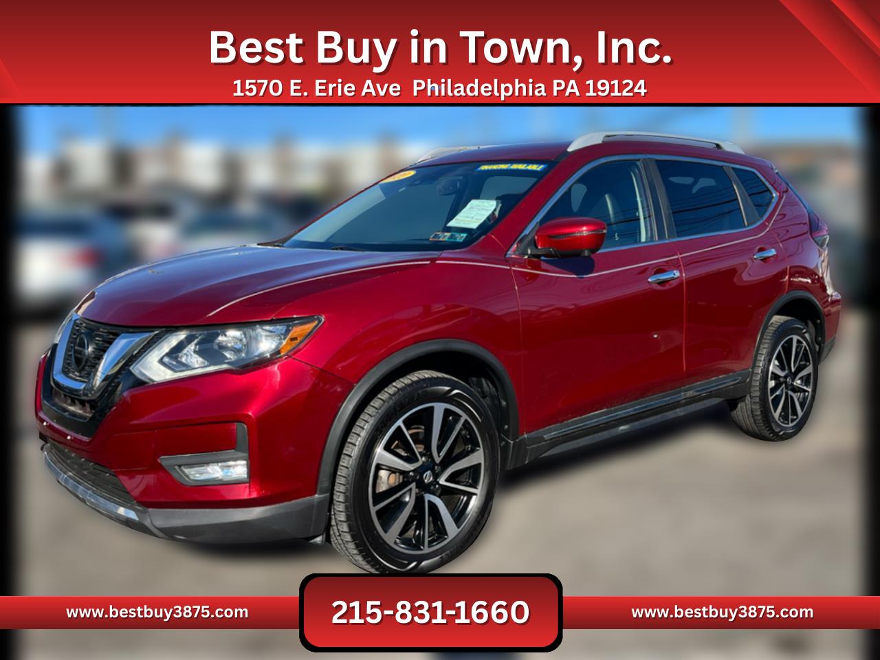Drive with confidence in this 2020 Nissan Rogue SL AWD, a compact SUV that blends everyday practicality with premium comfort. Powered by a 2.5L 4-cylinder engine and CVT automatic transmission, it delivers smooth performance and efficiency, ideal for city commutes or weekend getaways.The SL trim surrounds you with upscale features, including leather seating, heated front seats, dual-zone climate control, and a power panoramic moonroof. Technology is front and center with NissanConnect infotainment, navigation, Bluetooth, Apple CarPlay/Android Auto, and a premium audio system.Safety comes standard with Intelligent Cruise Control, Blind Spot Warning, Lane Departure Alert, and a rearview camera, giving peace of mind on every drive. With seating for five and flexible cargo space, the Rogue SL is built for both comfort and utility.Stylish, versatile, and well-equipped, this 2020 Rogue SL is ready to elevate your daily drive in Philadelphia. Financing Available! Bad credit good credit no credit! Apply online or in person and drive off today! All vehicles come with a brand-new PA inspection. Extended warranties available on all vehicles. Our finance team works with your budget and vehicle needs as top priorities regardless of credit history. All advertised prices exclude government fees taxes finance charges and any dealer document or preparation charge. All pricing and details are believed to be accurate but accuracy is not guaranteed. Best Buy in Town Inc. is not responsible for any typos the exact options list is automatically decoded from the VIN. ***ALL PRICES AND PAYMENTS REFLECT A $2000 CASH DOWN PAYMENT OR POSITIVE TRADE EQUITY APPLIED TO SALES PRICE. TAX TITLE TAGS AND OTHER FEES ARE NOT INCLUDED AND MUST BE PAID BY PURCHASER. CALL 215-831-1660 TO CONFIRM TOTAL SALES PRICE.*** Financing Available! Bad credit good credit no credit! Apply online or in person and drive off today! All vehicles come with a brand-new PA inspection. Extended warranties available on all vehicles. Our finance team works with your budget and vehicle needs as top priorities regardless of credit history. All advertised prices exclude government fees taxes finance charges and any dealer document or preparation charge. All pricing and details are believed to be accurate but accuracy is not guaranteed. Best Buy in Town Inc. is not responsible for any typos the exact options list is automatically decoded from the VIN. ***ALL PRICES AND PAYMENTS REFLECT A $2000 CASH DOWN PAYMENT OR POSITIVE TRADE EQUITY APPLIED TO SALES PRICE. TAX TITLE TAGS AND OTHER FEES ARE NOT INCLUDED AND MUST BE PAID BY PURCHASER. CALL 215-831-1660 TO CONFIRM TOTAL SALES PRICE.*** Financing Available! Bad credit good credit no credit! Apply online or in person and drive off today! All vehicles come with a brand-new PA inspection. Extended warranties available on all vehicles. Our finance team works with your budget and vehicle needs as top priorities regardless of credit history. All advertised prices exclude government fees taxes finance charges and any dealer document or preparation charge. All pricing and details are believed to be accurate but accuracy is not guaranteed. Best Buy in Town Inc. is not responsible for any typos the exact options list is automatically decoded from the VIN. ***ALL PRICES AND PAYMENTS REFLECT A $2000 CASH DOWN PAYMENT OR POSITIVE TRADE EQUITY APPLIED TO SALES PRICE. TAX TITLE TAGS AND OTHER FEES ARE NOT INCLUDED AND MUST BE PAID BY PURCHASER. CALL 215-831-1660 TO CONFIRM TOTAL SALES PRICE.*** Financing Available! Bad credit good credit no credit! Apply online or in person and drive off today! All vehicles come with a brand-new PA inspection. Extended warranties available on all vehicles. Our finance team works with your budget and vehicle needs as top priorities regardless of credit history. All advertised prices exclude government fees taxes finance charges and any dealer document or preparation charge. All pricing and details are believed to be accurate but accuracy is not guaranteed. Best Buy in Town Inc. is not responsible for any typos the exact options list is automatically decoded from the VIN. ***ALL PRICES AND PAYMENTS REFLECT A $2000 CASH DOWN PAYMENT OR POSITIVE TRADE EQUITY APPLIED TO SALES PRICE. TAX TITLE TAGS AND OTHER FEES ARE NOT INCLUDED AND MUST BE PAID BY PURCHASER. CALL 215-831-1660 TO CONFIRM TOTAL SALES PRICE.*** Financing Available! Bad credit good credit no credit! Apply online or in person and drive off today! All vehicles come with a brand-new PA inspection. Extended warranties available on all vehicles. Our finance team works with your budget and vehicle needs as top priorities regardless of credit history. All advertised prices exclude government fees taxes finance charges and any dealer document or preparation charge. All pricing and details are believed to be accurate but accuracy is not guaranteed. Best Buy in Town Inc. is not responsible for any typos the exact options list is automatically decoded from the VIN. ***ALL PRICES AND PAYMENTS REFLECT A $2000 CASH DOWN PAYMENT OR POSITIVE TRADE EQUITY APPLIED TO SALES PRICE. TAX TITLE TAGS AND OTHER FEES ARE NOT INCLUDED AND MUST BE PAID BY PURCHASER. CALL 215-831-1660 TO CONFIRM TOTAL SALES PRICE.*** Financing Available! Bad credit good credit no credit! Apply online or in person and drive off today! All vehicles come with a brand-new PA inspection. Extended warranties available on all vehicles. Our finance team works with your budget and vehicle needs as top priorities regardless of credit history. All advertised prices exclude government fees taxes finance charges and any dealer document or preparation charge. All pricing and details are believed to be accurate but accuracy is not guaranteed. Best Buy in Town Inc. is not responsible for any typos the exact options list is automatically decoded from the VIN. ***ALL PRICES AND PAYMENTS REFLECT A $2000 CASH DOWN PAYMENT OR POSITIVE TRADE EQUITY APPLIED TO SALES PRICE. TAX TITLE TAGS AND 