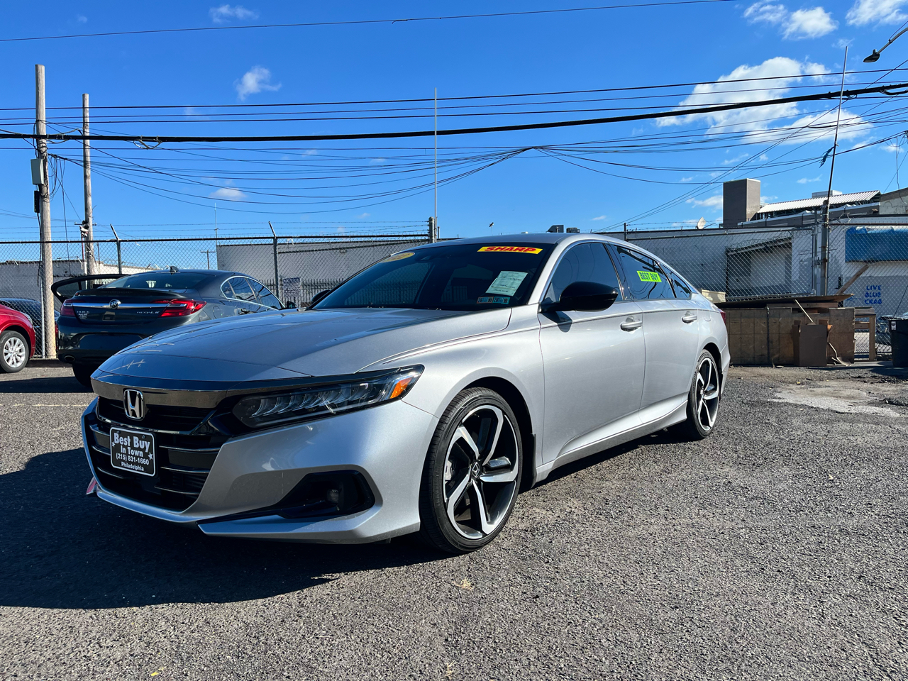 Stylish, efficient, and fun to drive, this 2022 Honda Accord Sport is a midsize sedan that blends everyday practicality with sporty character. Powered by a 1.5L turbocharged 4-cylinder engine paired with a CVT automatic transmission, it delivers smooth performance and excellent fuel economy, perfect for commuting or weekend trips.Inside, the Sport trim offers premium touches including cloth/leather-trimmed seating, power-adjustable drivers seat, dual-zone climate control, and a leather-wrapped steering wheel. Technology highlights include Hondas infotainment system with touchscreen, Bluetooth, Apple CarPlay/Android Auto, and available navigation, keeping you connected and entertained on the go.Safety is a priority with Honda Sensing driver-assist features such as Adaptive Cruise Control, Lane Keep Assist, Collision Mitigation Braking, and Road Departure Mitigation, giving peace of mind on every drive. With seating for five passengers and a spacious trunk, the Accord Sport balances practicality with sporty flair.With its bold design, advanced technology, and Hondas proven reliability, this 2022 Accord Sport is the perfect sedan for drivers in Philadelphia who want efficiency, comfort, and style in one package. Financing Available! Bad credit good credit no credit! Apply online or in person and drive off today! All vehicles come with a brand-new PA inspection. Extended warranties available on all vehicles. Our finance team works with your budget and vehicle needs as top priorities regardless of credit history. All advertised prices exclude government fees taxes finance charges and any dealer document or preparation charge. All pricing and details are believed to be accurate but accuracy is not guaranteed. Best Buy in Town Inc. is not responsible for any typos the exact options list is automatically decoded from the VIN. ***ALL PRICES AND PAYMENTS REFLECT A $2000 CASH DOWN PAYMENT OR POSITIVE TRADE EQUITY APPLIED TO SALES PRICE. TAX TITLE TAGS AND OTHER FEES ARE NOT INCLUDED AND MUST BE PAID BY PURCHASER. CALL 215-831-1660 TO CONFIRM TOTAL SALES PRICE.*** Financing Available! Bad credit good credit no credit! Apply online or in person and drive off today! All vehicles come with a brand-new PA inspection. Extended warranties available on all vehicles. Our finance team works with your budget and vehicle needs as top priorities regardless of credit history. All advertised prices exclude government fees taxes finance charges and any dealer document or preparation charge. All pricing and details are believed to be accurate but accuracy is not guaranteed. Best Buy in Town Inc. is not responsible for any typos the exact options list is automatically decoded from the VIN. ***ALL PRICES AND PAYMENTS REFLECT A $2000 CASH DOWN PAYMENT OR POSITIVE TRADE EQUITY APPLIED TO SALES PRICE. TAX TITLE TAGS AND OTHER FEES ARE NOT INCLUDED AND MUST BE PAID BY PURCHASER. CALL 215-831-1660 TO CONFIRM TOTAL SALES PRICE.*** Financing Available! Bad credit good credit no credit! Apply online or in person and drive off today! All vehicles come with a brand-new PA inspection. Extended warranties available on all vehicles. Our finance team works with your budget and vehicle needs as top priorities regardless of credit history. All advertised prices exclude government fees taxes finance charges and any dealer document or preparation charge. All pricing and details are believed to be accurate but accuracy is not guaranteed. Best Buy in Town Inc. is not responsible for any typos the exact options list is automatically decoded from the VIN. ***ALL PRICES AND PAYMENTS REFLECT A $2000 CASH DOWN PAYMENT OR POSITIVE TRADE EQUITY APPLIED TO SALES PRICE. TAX TITLE TAGS AND OTHER FEES ARE NOT INCLUDED AND MUST BE PAID BY PURCHASER. CALL 215-831-1660 TO CONFIRM TOTAL SALES PRICE.*** Financing Available! Bad credit good credit no credit! Apply online or in person and drive off today! All vehicles come with a brand-new PA inspection. Extended warranties available on all vehicles. Our finance team works with your budget and vehicle needs as top priorities regardless of credit history. All advertised prices exclude government fees taxes finance charges and any dealer document or preparation charge. All pricing and details are believed to be accurate but accuracy is not guaranteed. Best Buy in Town Inc. is not responsible for any typos the exact options list is automatically decoded from the VIN. ***ALL PRICES AND PAYMENTS REFLECT A $2000 CASH DOWN PAYMENT OR POSITIVE TRADE EQUITY APPLIED TO SALES PRICE. TAX TITLE TAGS AND OTHER FEES ARE NOT INCLUDED AND MUST BE PAID BY PURCHASER. CALL 215-831-1660 TO CONFIRM TOTAL SALES PRICE.*** Financing Available! Bad credit good credit no credit! Apply online or in person and drive off today! All vehicles come with a brand-new PA inspection. Extended warranties available on all vehicles. Our finance team works with your budget and vehicle needs as top priorities regardless of credit history. All advertised prices exclude government fees taxes finance charges and any dealer document or preparation charge. All pricing and details are believed to be accurate but accuracy is not guaranteed. Best Buy in Town Inc. is not responsible for any typos the exact options list is automatically decoded from the VIN. ***ALL PRICES AND PAYMENTS REFLECT A $2000 CASH DOWN PAYMENT OR POSITIVE TRADE EQUITY APPLIED TO SALES PRICE. TAX TITLE TAGS AND OTHER FEES ARE NOT INCLUDED AND MUST BE PAID BY PURCHASER. CALL 215-831-1660 TO CONFIRM TOTAL SALES PRICE.*** Financing Available! Bad credit good credit no credit! Apply online or in person and drive off today! All vehicles come with a brand-new PA inspection. Extended warranties available on all vehicles. Our finance team works with your budget and vehicle needs as top priorities regardless of credit history. All advertised prices exclude government fees taxes finance charges and any dealer document or preparation charge. All pricing and details are believed to be accurate