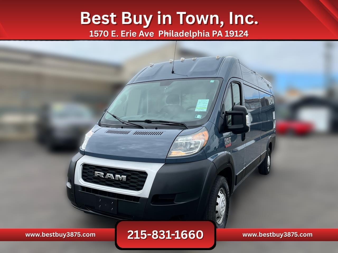 Stay connected and entertained with the 5.0" touchscreen display, perfect for streaming audio as you cruise along. Safety is a top priority with features like side impact beams, low tire pressure warning, and a ParkView backup camera. Plus, the spacious cargo area offers plenty of room for all your gear and equipment. Don't miss out on the opportunity to make this versatile 2019 RAM ProMaster Cargo Van your own!