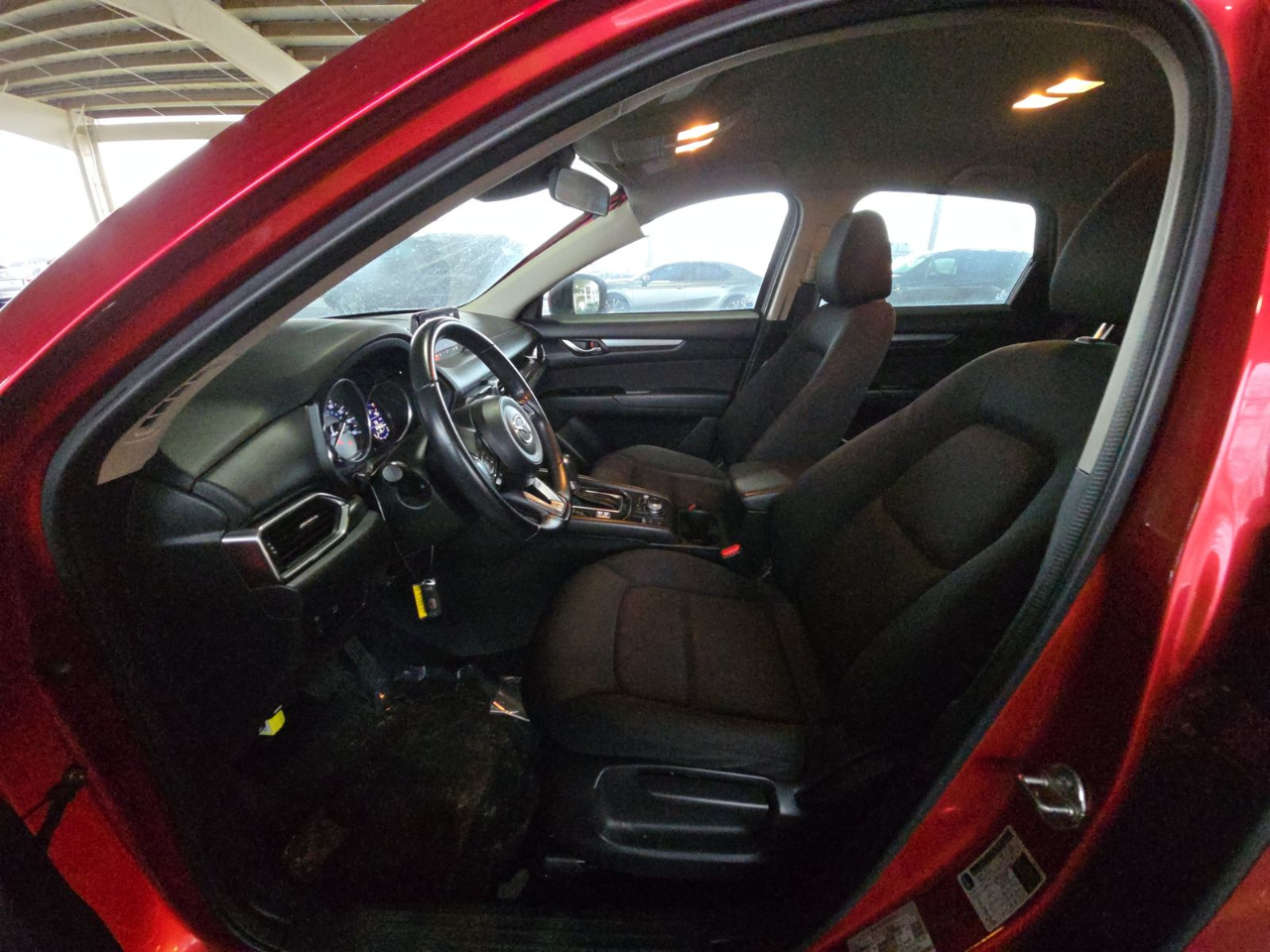 Step into this vibrant 2019 Red Mazda CX-5 and buckle up for a thrilling ride! This stylish SUV is powered by a 2.5L SKYACTIV-G DOHC 4-Cylinder engine, paired with a 6-Speed Automatic transmission that promises a smooth and efficient drive. With an Automatic Full-Time All-Wheel Drive system, you'll feel confident tackling any road conditions with ease. The sleek exterior boasts 17" Gray Metallic Alloy wheels and a sporty lip spoiler, turning heads wherever you go.Inside, you'll find comfortable Sport front seats and a spacious cabin with a thoughtfully designed layout featuring a leather-wrapped steering wheel and convenient proximity key with push-button start. Enjoy the convenience of a back-up camera for added safety and peace of mind. With Blind Spot Monitoring and Rear Cross Traffic Alert, you'll always be aware of your surroundings on the road.